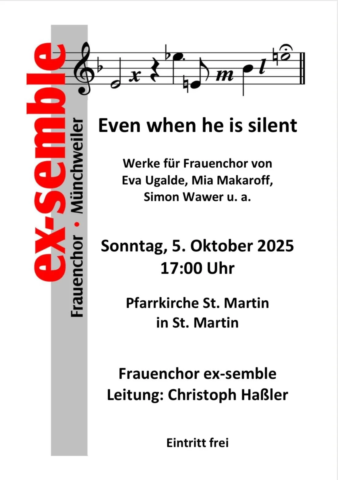 Der südwestpfälzische Frauenchor „ex-semble“ unter Leitung von Christoph Haßler bot ein außergewöhnliches A-cappella-Konzert in der Katholischen Pfarrkirche in St. Martin. Dass das in properer Kammerchorstärke aufgestellte Frauen-Ensemble aus dem südwestpfälzischen Münchweiler schon seit seiner Gründung weit über seine Kirchturmspitze hinausblickt, dafür gerne und stetig durch Wettbewerbs- und Festivalländer reist, findet nachdrücklich Widerhall im stetig wachsenden Repertoire. Dementsprechend weltläufig sind auch die Konzertprogramme, so wie das am Sonntag in der gut besetzten St. Martiner Pfarrkirche.