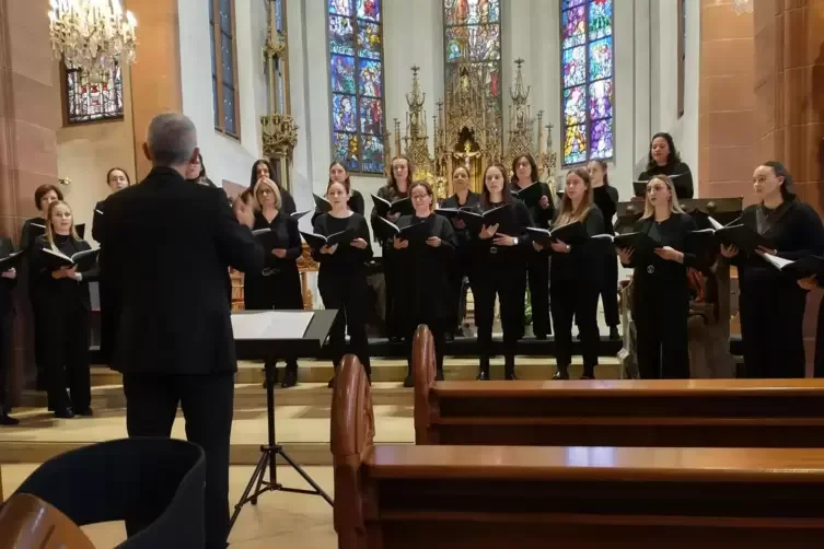 Der südwestpfälzische Frauenchor „ex-semble“ unter Leitung von Christoph Haßler bot ein außergewöhnliches A-cappella-Konzert in der Katholischen Pfarrkirche in St. Martin. Dass das in properer Kammerchorstärke aufgestellte Frauen-Ensemble aus dem südwestpfälzischen Münchweiler schon seit seiner Gründung weit über seine Kirchturmspitze hinausblickt, dafür gerne und stetig durch Wettbewerbs- und Festivalländer reist, findet nachdrücklich Widerhall im stetig wachsenden Repertoire. Dementsprechend weltläufig sind auch die Konzertprogramme, so wie das am Sonntag in der gut besetzten St. Martiner Pfarrkirche.